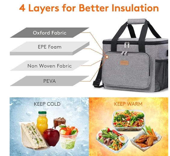 Mokotla oa picnic, mokotla oa lijo tsa motšeare o entsoe ka thepa e kentsoeng e le efe e ka bolokang lijo le lino tse pholileng kapa li futhumetse nako e fetang lihora tse 5. Ntle le moo, karolo e kahare e etsoa ka fova fova ea lijo e le hore u behe lijo tsa hau ka mokotleng ka kotloloho ntle le ho tšoenyeha. Foam ea 6mm epe e fana ka tšireletso e kholo ho lijana tsa hau, lijo le lino.