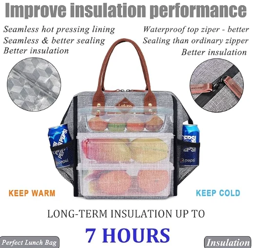 Ho pharalla ka ntle ho naha ea foil cooler bag. ka lebaka la ho tsoaloa le ho nahanela ka holimo ho metsi Nako ea ho boloka lijo le lino tse tahang li bata