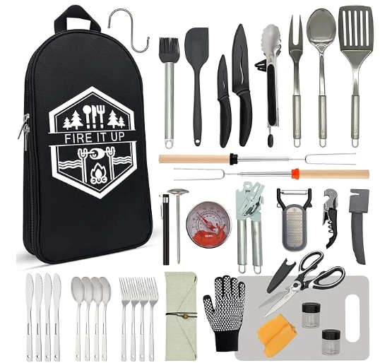Sepo sa polokelo sa Camp ea kantle ho Camping ea PC ea PC ea PC ena ea PC ena ea PC ena e sentse litlhoko tsa ho pheha tsa hau tsa ho pheha. E kenyelletsa ho hloma liahelo le lisebelisoa tsa ho hlongoa liapole, kaofela li behiloe ka makhethe ka mokotleng oa moetlo le mekotla e 'meli e ka morao. Lisebelisoa tse etselitsoeng ho hlokomela lintho tsohle tsa hau tsa ho pheha, ho li etsa hore e be kenyelleletso ea lisebelisoa tsa hau tsa Campling