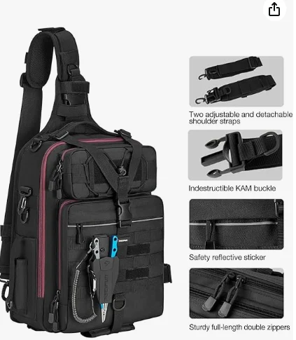 Mokhahlelo oa ho Ts'oasa Litlhapi.ERGonomic Ka kakaretso, ho kenyelletsa le moralo oa mahetla oa lerako, Ltd. Ha mekotla ea hau e 'ngoe e phatsimang e boloka lintho tsa hau tsa letsatsi le letsatsi. Pokello ea letsoho le letšehali ke ea linoelo tsa metsi / botlolo, 'me pokotho e nepahetseng ke ea lisebelisoa tse kang li-plieder. Feshene ebile e tiile, mokotla oa rona o loketse bophelo ba ka ntle