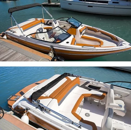 Bimini ea Stainless Boain, e entsoeng ka Sesole sa Marine 600d Potingester Canvas e nang le Cooring habeli, Boot ea rona ea polokelo e fana ka tšireletso e ntle ho tloha khanya ea letsatsi, metsi a leoatle, pula le lerōle.